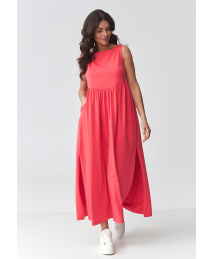 Stylowa sukienka maxi o swobodnym kroju to idealna propozycja dla kobiet, które cenią wygodę i ponadczasowy design. Model posiada subtelnie rozszerzany dół oraz efektowne rozcięcia po bokach, które nadają lekkości i podkreślają sylwetkę. Gładka forma sprawia, że sukienka doskonale sprawdzi się zarówno na co dzień, jak i w bardziej eleganckich stylizacjach. Zastosowany przewiewny materiał zapewnia komfort noszenia przez cały dzień, a luźny fason gwarantuje swobodę ruchów. Praktyczne kieszenie zwiększają funkcjonalność, a zabudowana góra z delikatnym marszczeniem w talii subtelnie modeluje proporcje sylwetki. To uniwersalna długa sukienka damska, którą z łatwością zestawisz zarówno ze sportowym obuwiem, jak i bardziej eleganckimi dodatkami. Idealna na spacer, spotkanie, wakacyjny wyjazd czy codzienne wyjścia.