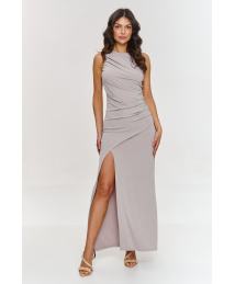 suknele maxi su marszczeniami ir głębokim rozcięciem sviesus beż M880