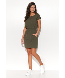 suknele su gumą per liemeni chaki NU442