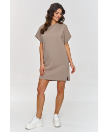 Sukienka z krótkimi rękawami to doskonały wybór dla kobiet, które cenią prostotę i klasę w codziennych stylizacjach. Jej luźny krój z lekkimi detalami, takimi jak przeszycia na przodzie, nadają jej nowoczesnego ale i uniwersalnego charakteru. Szeroki rękaw sięgający do łokcia wprowadza swobodny, casualowy akcent, a jednocześnie pozostaje elegancki. Dekolt sukienki ma klasyczny, okrągły kształt, który subtelnie eksponuje szyję, zachowując prostotę kreacji. Natomiast kieszenie po bokach to praktyczny element, który dodaje funkcjonalności, jednocześnie zachowując jej minimalistyczny wygląd. Model ma długość przed kolano, co sprawia, że doskonale podkreśla nogi, tworząc świeży, lekki wygląd. Sukienka pasuje do wielu stylizacji i jest doskonałym tłem dla modnych akcesoriów. Możesz ją połączyć z eleganckimi dodatkami na wieczorne wyjście lub z casualowymi na co dzień. Dzięki prostemu, ale efektownemu krojowi, jest to idealna baza na co dzień, do pracy, na spotkania ze znajomymi lub weekendowy wypad. Z jej pomocą stworzysz świeżą, elegancką stylizację, którą łatwo dopasujesz do swojego stylu. Sukienka występuje w kolorach: jasny beż, indygo, śmietankowy, koralowy, czarny i czekoladowy.