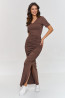 Sukienka z marszczeniami to propozycja, która łączy elegancję i klasę. Wykonana z miękkiego materiału, idealnie dopasowuje się do sylwetki, podkreślając jej kształty. Marszczenia na bokach nadają jej nowoczesnego charakteru i subtelnie modelują sylwetkę, natomiast dekolt w kształcie litery "V" wysmukla szyję. Z rozcięciem po boku sukienka zyskuje lekkość i zmysłowość, co czyni ją doskonałym wyborem na różne okazje. Długość maxi tworzy elegancki, wydłużający sylwetkę efekt, który doda Ci pewności siebie. Model został wykonany z elastycznego materiału, co zapewnia wygodę przez cały dzień. Świetnie wygląda zarówno w połączeniu z białymi sneakersami na co dzień, jak i z eleganckimi butami na wieczorne wyjścia. Ponadto dzięki swojemu uniwersalnemu charakterowi, będzie świetnym wyborem na każdą porę roku. Model występuje w dwóch ponadczasowych kolorach: czarnym i czekoladowym. Ta sukienka z marszczeniami i długością maxi to propozycja dla kobiet, które cenią wygodę, ale nie chcą rezygnować z eleganckiego wyglądu. Z jej pomocą stworzysz stylizacje na każdą okazję.