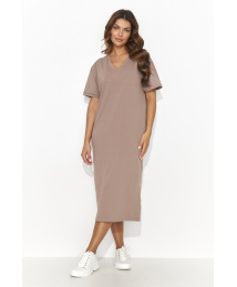 Nowoczesna i stylowa krótka sukienka dresowa, która łączy wygodę z modnym designem. Posiada nieoczywiste wycięcie na plecach, które nadaje jej subtelnego zmysłowego charakteru, ozdobione biżuteryjną blaszką w złotym kolorze. Sukienka jest zabudowana z przodu, w dolnej części posiada delikatne rozcięcia, co nadaje jej lekkości i swobodnego charakteru. Posiada bardzo swobodny fason, co czyni ją doskonałym wyborem na swobodne i aktywne spotkania ze znajomymi. Dostępna w kolorach: czekoladowym, piaskowym, czarnym i śmietankowym. W zależności od dodatków, wystylizujesz ją dokładnie tak, jak lubisz najbardziej!